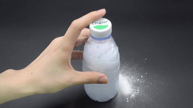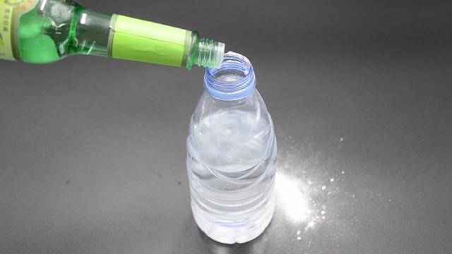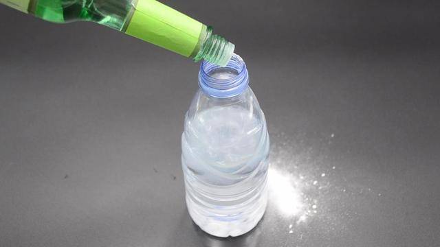 首先準備半塑料瓶的清水,并且往水里倒入一勺的小蘇打。