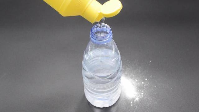 然后再往塑料瓶內擠入一些洗潔精。