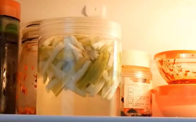接下來,把裝有柚子皮絲和水的容器密封好,放入冰箱靜置七天。在這段時間里,柚子皮中的有效成分會慢慢溶解到水中,形成一種強大的清潔劑。