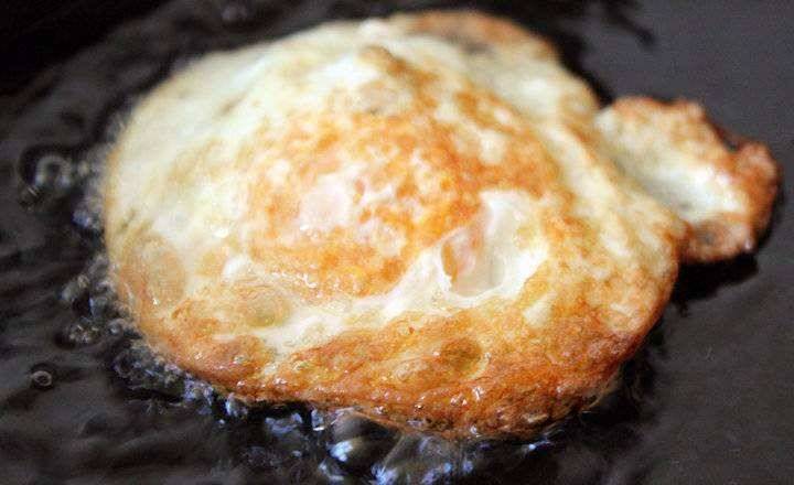 還要強調一點,雞蛋入鍋前,一定要將油溫燒熱,如果油過涼的話,不可以打入雞蛋去煎,必須要熱鍋煎雞蛋,這是煎雞蛋的另一個技巧,大家別忘記了,因為熱鍋打入雞蛋后,雞蛋會迅速定型,不會在鍋內流動,這樣煎出來的形狀比較完美,而且雞蛋也不會粘鍋。