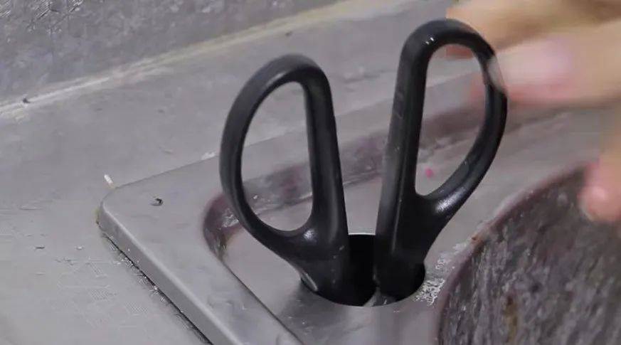 在洗碗池旁邊的小孔,原來不只是一個簡單的設計,它還可以成為我們剪刀的巧妙存放地。剪刀是廚房中常用的工具,然而保存不當可能會帶來一定的危險。將剪刀[插·入]小孔,不僅能夠有效避免剪刀向上帶來的潛在危險,還能使廚房更加整潔有序。