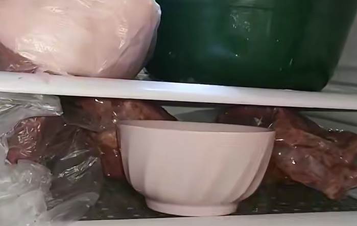 這時,我們只需將這碗白醋橘子皮放入冰箱中,橘子皮的清香和白醋的除臭效果會有效地去除冰箱異味。只需等待一段時間,打開冰箱就會發現異味已經消失了。