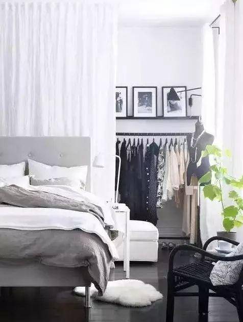你再往前挪一挪,用個窗簾隔開,構思巧妙,你家連衣帽間都能有了!