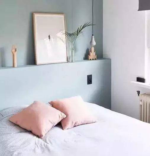 誰說床一定要正對貼墻放?你對著角落斜著放,自帶床頭收納板,放些台燈,相框,臥室也有不一樣的feel~