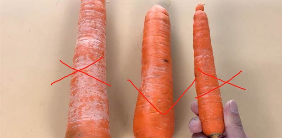 如果我們看到很大的胡蘿卜比其他胡蘿卜都要大很多,那麼像這種胡蘿卜就說明已經非常老啦,吃起來的口感也是非常差,而且基本上沒有什麼胡蘿卜味道,所以就不建議大家購買。