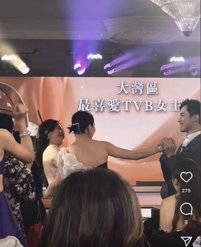 當林峯和楊茜堯激動念出佘詩曼的名字時,舞台下《新聞女王》的一眾演員全都激動得站了起來,為佘詩曼的得獎而感到高興,紛紛上前和她擁抱送上祝賀。和佘詩曼坐在同一桌子的何廣沛,全程錄下了佘詩曼從得知自己領獎,到她走上領獎台上的過程,以「床寶」第一視角見證Man姐三封視后的瞬間!