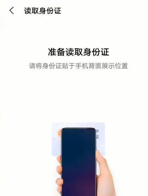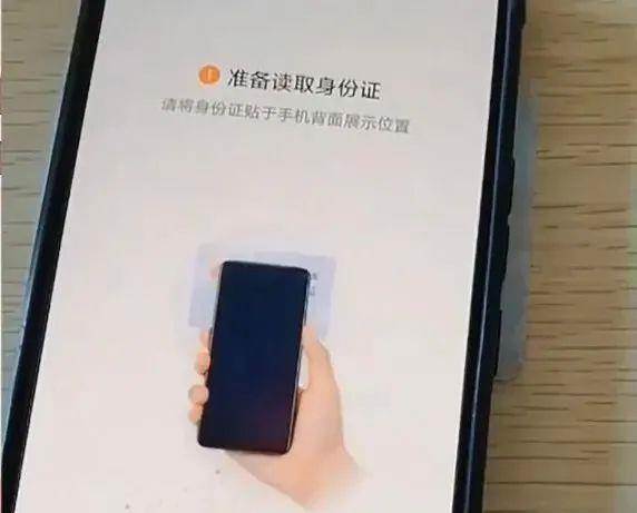 這兒就會顯示準備讀取身份證件,請將身份證貼于手機背面。我們可以把這個身份證放在桌面上,然后把手機靠上去好了,正在讀取身份證信息。