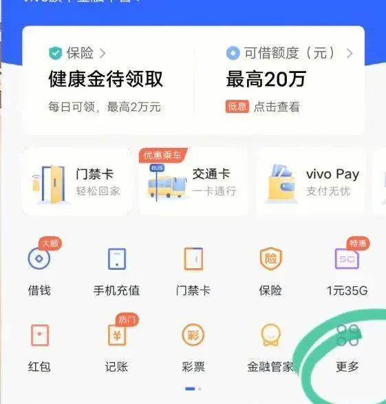 nfc功能打開之后,我們返回到桌面,然后找到手機的錢包。華為手機的話你都找到華為錢包,我的是vivo手機,就找vivo錢包,點擊打開,找到更多點開。