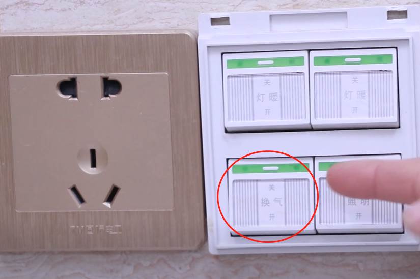 將衛生間門關閉之后,接下來需要做的就是將衛生間的換氣功能給他打開。