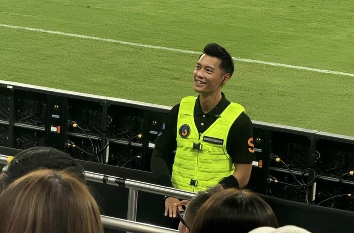 之前,就有熱心網友拍到黎振燁在關智斌演唱會現場當保安維護秩序。現在,也有網友拍到他在足球比賽中,當保安,可見平時工作也是相當忙碌。