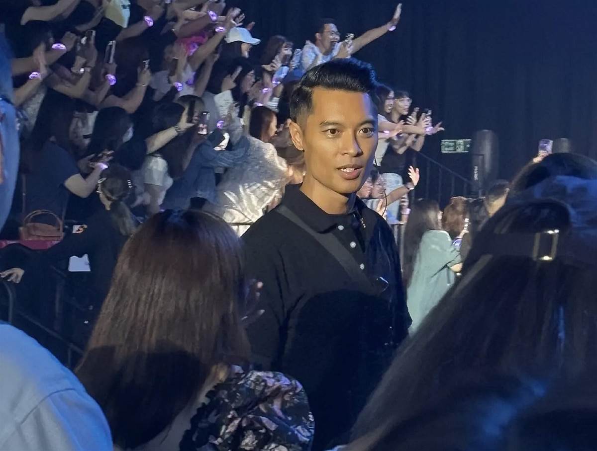 從網友在現場拍攝的圖片可以看到,黎振燁身材高大、皮膚黝黑,確實很適合做保安工作。站在那里,也是有模有樣,給網友和在場的觀眾,都有種莫名的安全感。