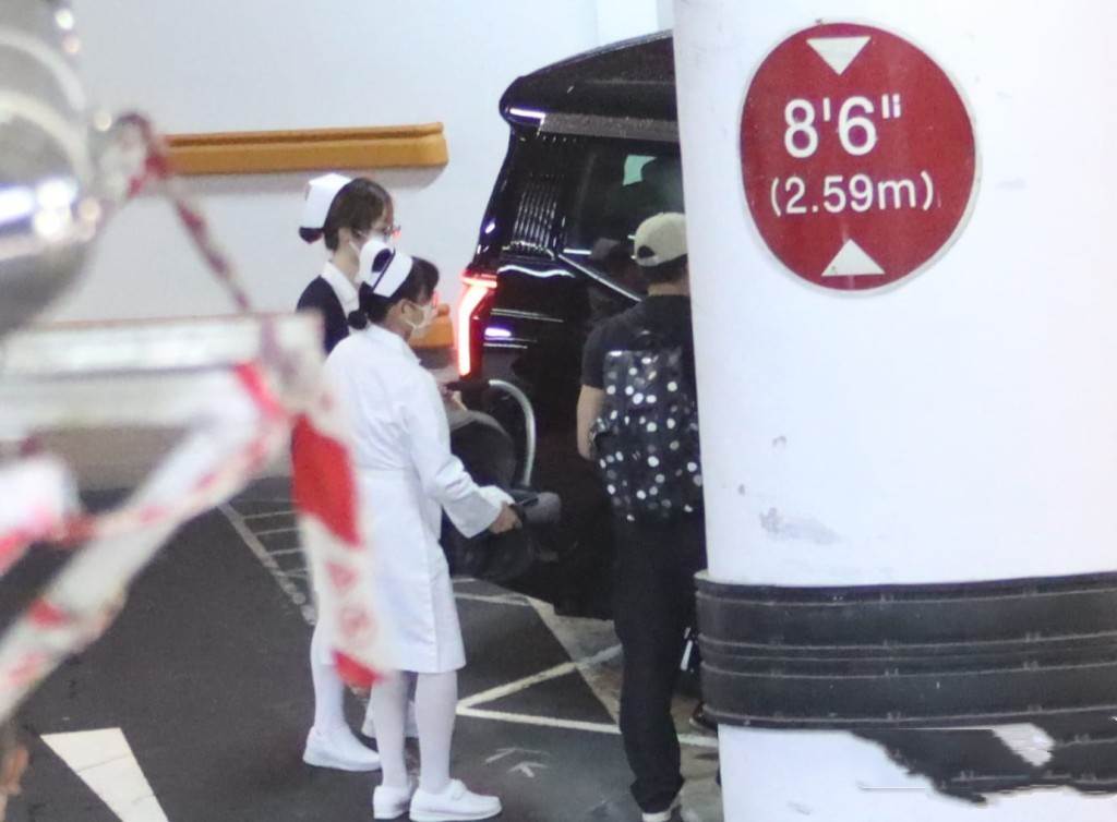 港媒拍到一名護士手中有一個嬰兒籃,護士小心翼翼的將嬰兒籃放到郭富城的車上。
