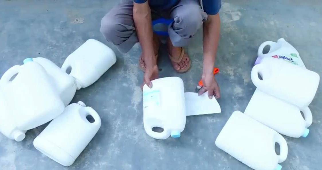 用鋒利的刻刀將塑料桶把手的位置切掉,