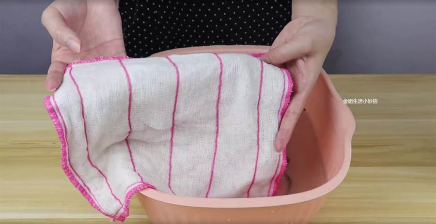 1. 將臟而發黃的毛巾浸泡于清水中,加入食用鹽進行消殺。