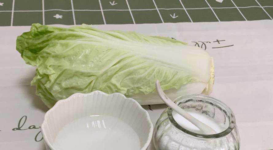 收集所需的工具,包括白菜葉、牙膏、小蘇打、食用鹽和白醋。