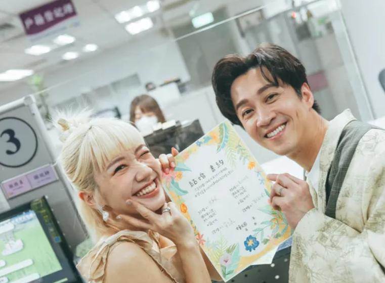 兩人還在現場拉起橫幅,上面寫著「我們結婚了!PS不是開玩笑」,幽默感十足,就像他們在節目《綜藝大熱門》一樣,就算結婚也不忘給觀眾帶來歡聲笑語。