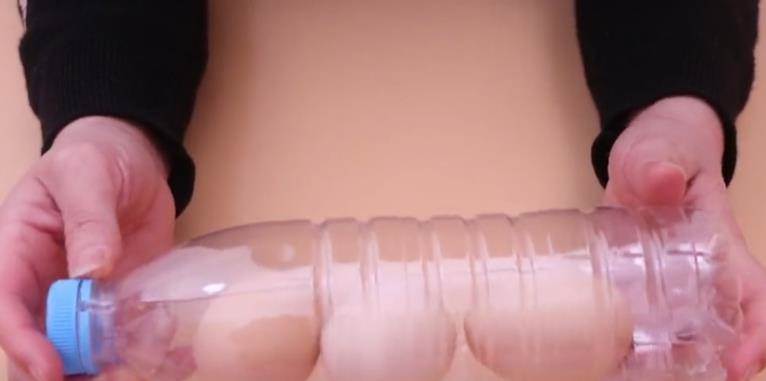妙用一,收納雞蛋,我們平常走親戚回家的時候總會帶一點土雞蛋回來,但是雞蛋不容易保存,特別容易碎掉,這時候我們就可以將它裝進塑料瓶里面了。我們再將蓋子給它蓋緊。這樣子既不占空間,而且還不容易碎掉。