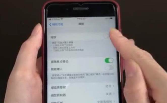 其實這個輔助功能里面還有一個縮放功能,把縮放功能打開,它的作用是可以把我們手機的界面放大,
