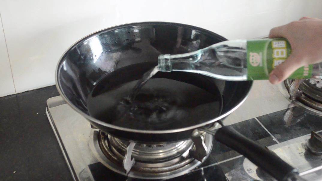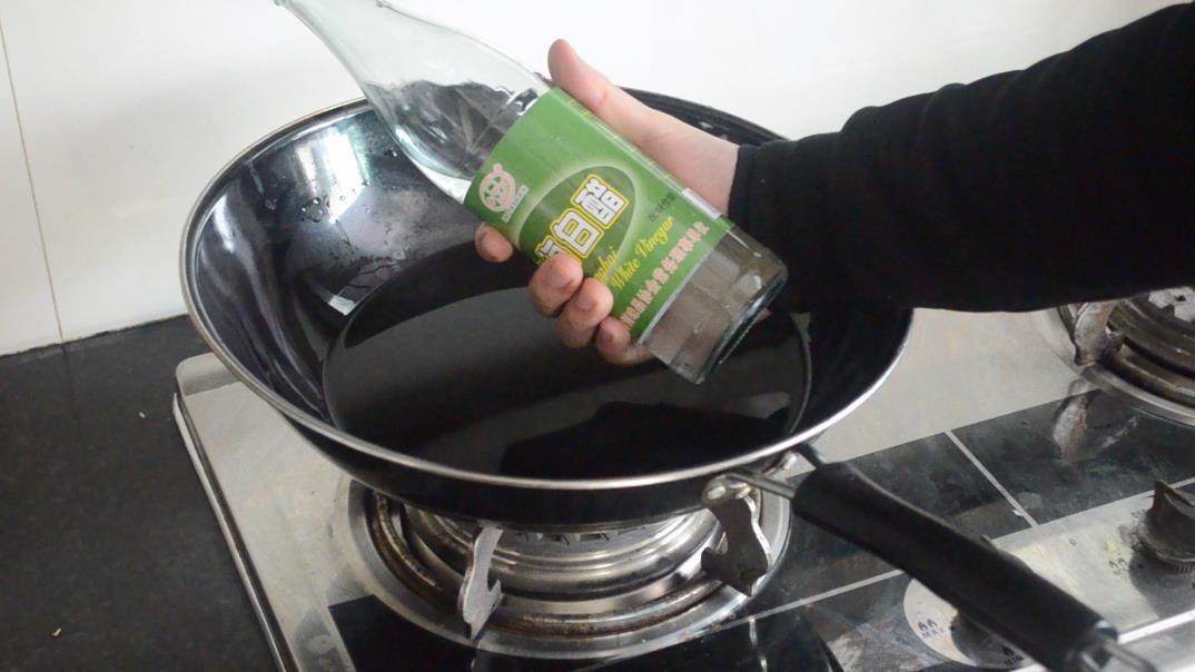 接著準備半鍋水,并且往鍋內倒入一些白醋。白醋不僅能殺菌消毒,而且它還可以軟化污漬的作用。