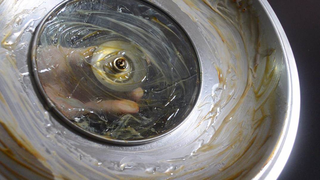 然后用手將洗潔精涂抹均勻,盡量讓鍋蓋上有油污的地方都涂抹上一些洗潔精。