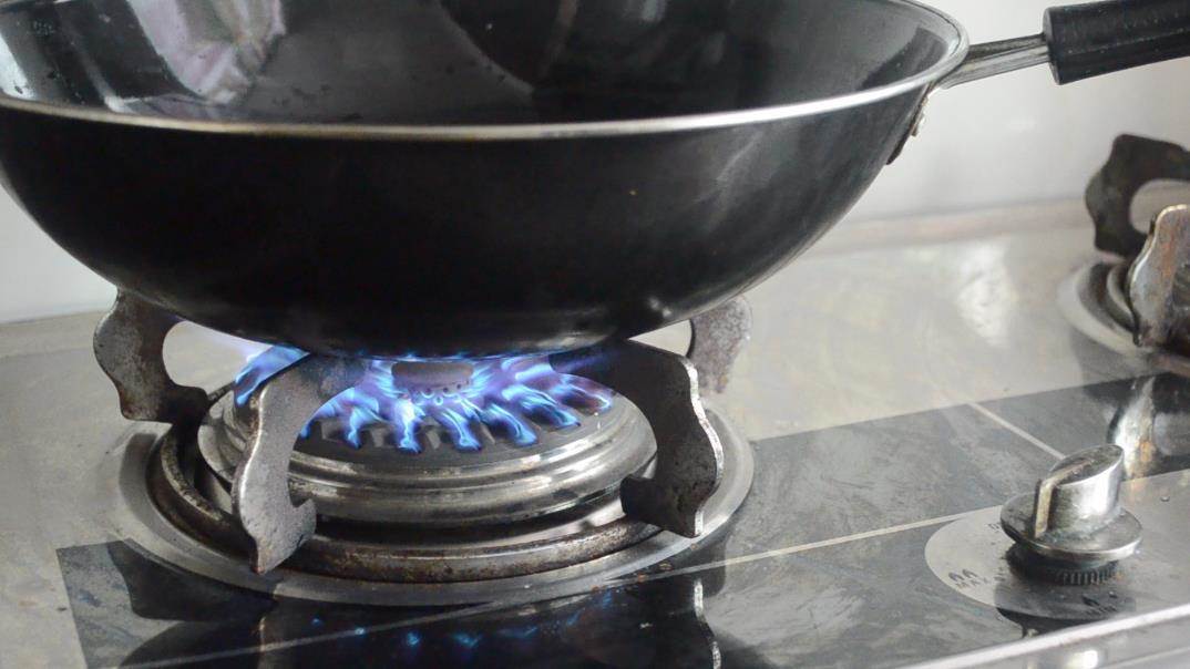 再打開煤氣灶將火調至到大火,并且把涂有洗潔精的鍋蓋放在鍋蓋上面。