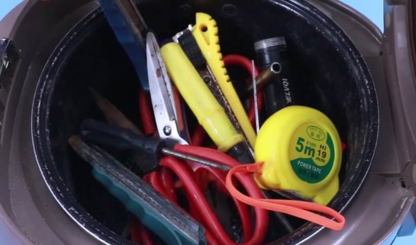 第四個妙用,我們也可以利用廢舊電飯煲來當做一個收納工具的神器。如果我們家里面的工具剪刀比較多,我們千萬不要亂放,一定要將它收納好,我們可以選擇直接將一些工具剪刀收納在一個廢舊的電飯煲中,這樣也是非常安全隱秘的,因為電飯煲內膽可是非常的大,可以放很多工具剪刀,我們還可以選擇蓋上蓋子就可以防止家中的小朋友拿去玩耍,我們攜帶出門也是非常方便的,下次你也可以試一試。