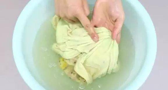 這時候,我們往水中倒一點白醋,主要將白醋倒在毛巾的污漬上面。我們都知道,白醋是一種去污能力很好的廚房「清潔劑」,而且因為它是酸性的,而堿性的污垢有軟化功能。因為,當我們倒上白醋之后,不一會就能看到毛巾上的污漬慢慢溶解掉水里面去了!