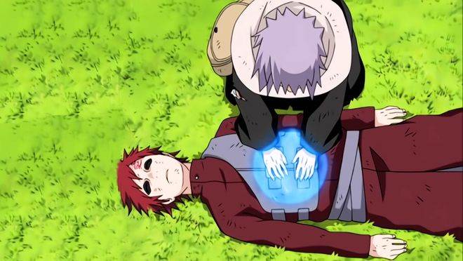 當迪達拉和蝎組隊前往砂之國捕捉守鶴之際,小迪單人便通關了我愛羅副本,將守鶴抽走。千代婆婆雖然帶著小櫻將蝎制服擊敗,可是面對瀕死的我愛羅不得不施展禁術以命換命將他救活。