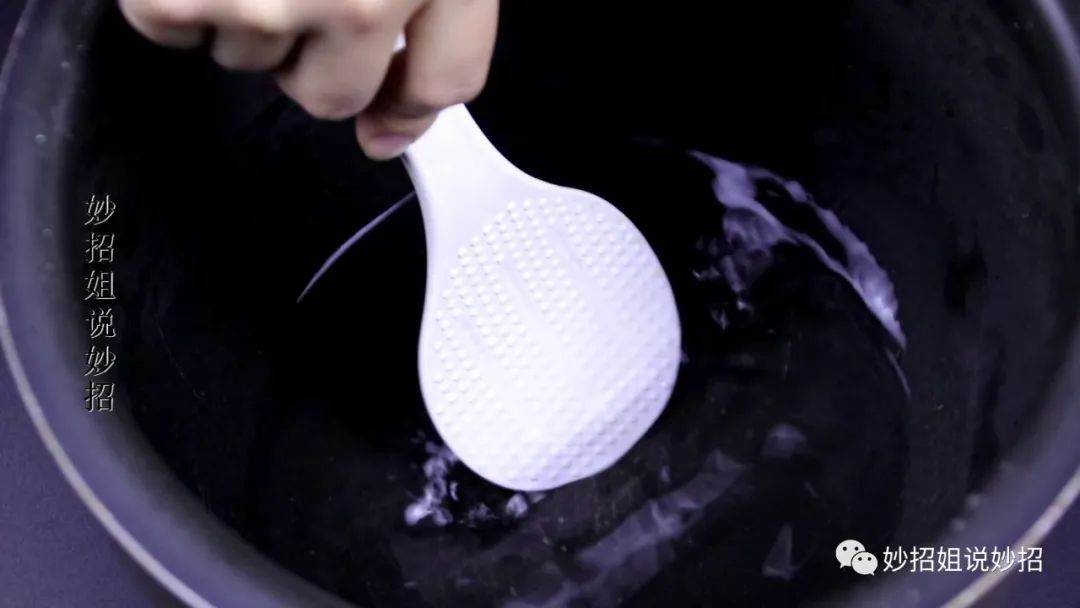 通常這個時候,我們都會用清水浸泡,但往往要泡上很長的時間,才能將它泡軟。也有些朋友想快速清潔干凈,就會選擇用鋼絲球來擦拭,但這樣就會對內膽的保護層造成破壞。其實我們只需要用飯勺對準有米粒的地方摩擦幾下,就能將它摩擦下來了。這是因為塑料飯勺上面不平整的小疙瘩可以增加摩擦,用它來擦拭就能將米粒清潔下來了。不僅如此,飯勺是塑料的,也不用擔心會在內膽上留下痕跡,用它來處理粘住的米粒,非常的好用。