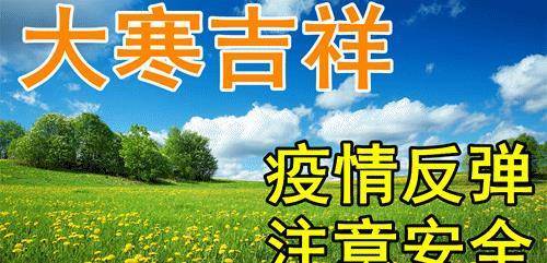 呼氣吐霧大寒天,胡須眉毛全結霜。全身皮衣裹體暖,步履難邁口難張。精神欠佳別上班,抱著火爐燉羊湯。愿你有個好身體,比賺鈔票還要強!大寒開心笑。