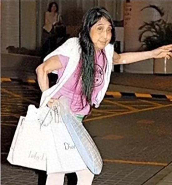 照片中,手里拿著名牌包卻如拾荒者的風瘋癲女人就是賭王何鴻燊的大女兒何超英。