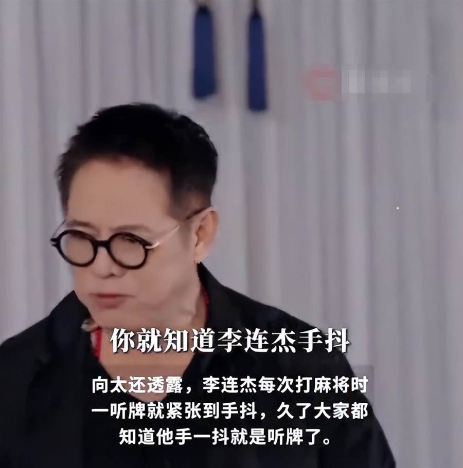 向太還爆了個猛料,說李連杰打麻將有個毛病,一聽牌就緊張到手抖。