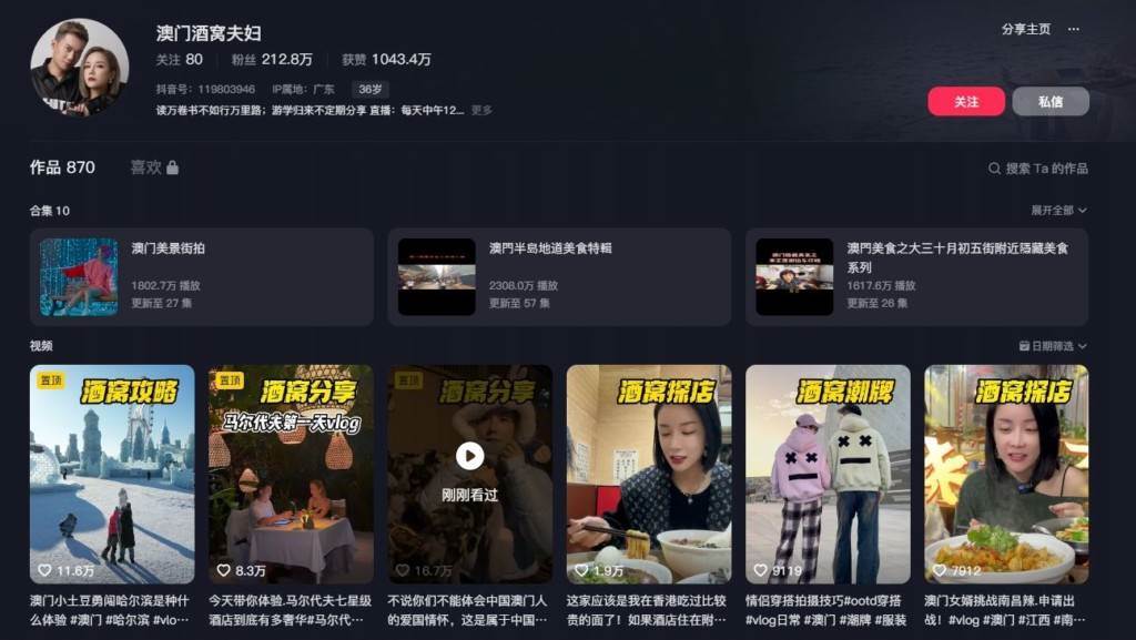 澳門網紅夫妻「澳門酒窩夫婦」在抖音擁有212萬粉絲追蹤,同時活躍于西瓜視訊、BiliBili等,自介寫著「澳門陀地帶你玩轉澳門最地道的吃喝玩樂,老婆南昌姑娘嫁到澳門」等等,專門分享與美食與旅遊的相關資訊。然而,妻子秦思 (網名:思思) 傳出被網路霸凌3年,就在1月15日輕生,享年36歲。