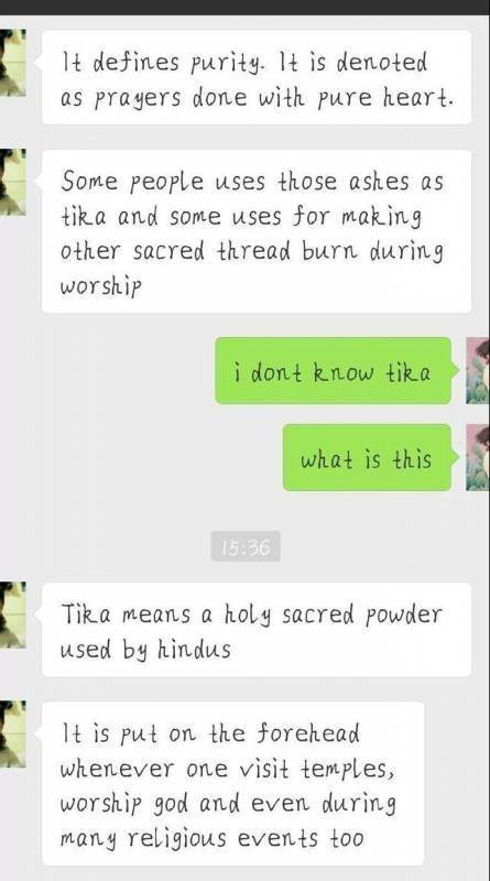 他告訴我,沉香香灰或者其他粉末作為提卡,提卡是印度教徒使用的一種神聖粉末,