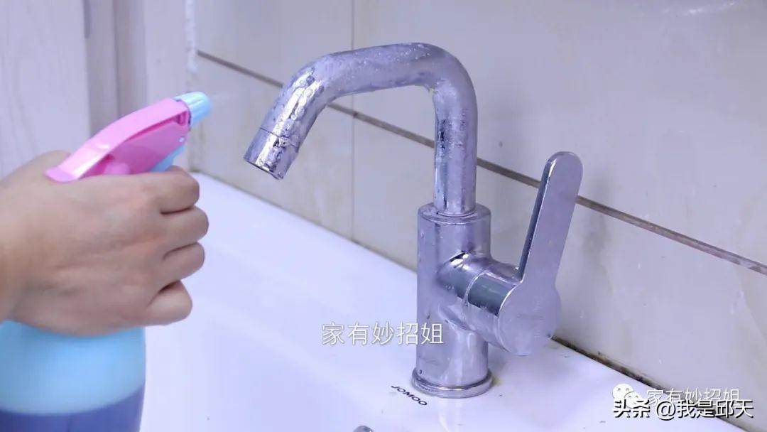 接下來,只需要將這個溶液均勻地噴灑在水龍頭上,然后再用抹布來擦拭。