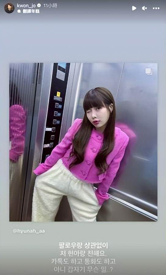 只是兩人的感情惹議,韓網20日有網友指出,與泫雅交情要好的趙權、哈妮及孟佳,目前都已經取消對泫雅的Instagram關注。對此,趙權在21日對外解釋:「跟取消追蹤無關聯,我跟泫雅很親!我們會聊kakaotalk還會打電話,不是,這是發生什麼事啦?」親自表示他們的友情并未生變。