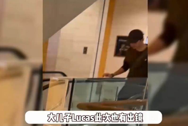 而大兒子謝振軒帶著棒球帽跟在后面,身高看起來跟謝霆鋒差不多。