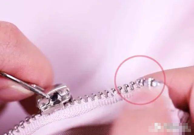 將斷裂的拉鏈頭拉到頂部凹槽,然后沿著傾斜方向拉出,這樣拉鏈頭就可以很容易地從這個凹槽中取出。這時我們可以從家里找一件不穿的舊衣服,像剛才的方法一樣把拉鏈頭拿出來。