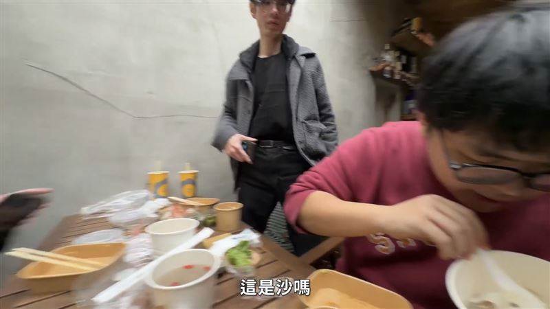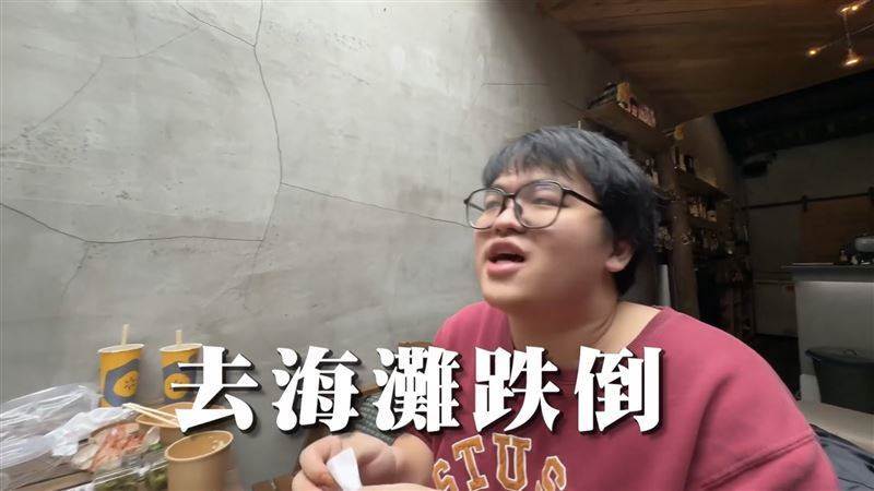 ▲網紅小胖喝超哥日料店的湯「喝到沙」吐出來,「口味感覺像在海灘跌倒。」(圖/翻攝自王千翔YouTube)