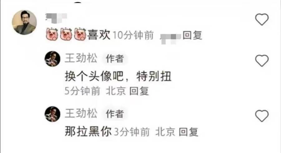 也有網友在王勁松發布的動態下表示自己喜歡,似乎鐵了心不想要更換頭像。對此,王勁松的回復只有「那拉黑你」四個字,看起來的確十分不近人情。