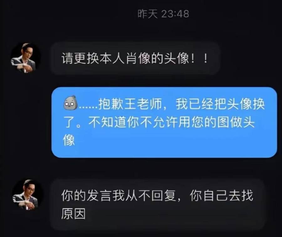 翻看網友之前截圖留證的評論中,王勁松不止不允許網友使用自己的肖像做頭像,還對網友說出了不回復網友留言讓對方自己找原因,這種帶著「耍大牌」性質的迷惑言論。