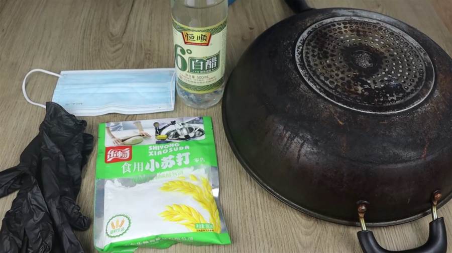 在開始清潔之前,確保你準備了口罩、白醋、小蘇打、食用鹽和手套。