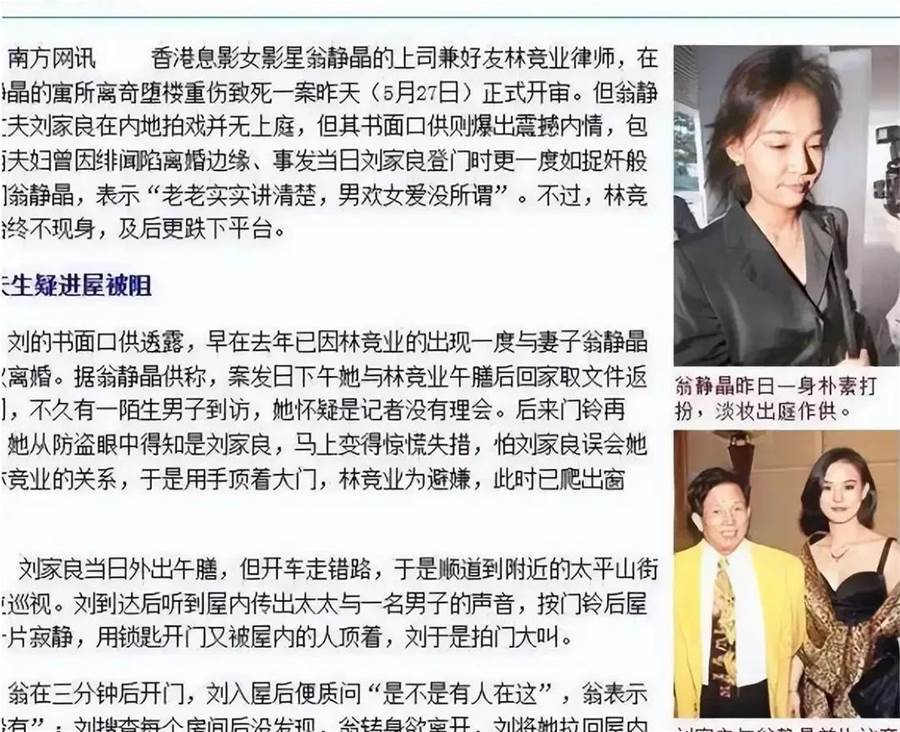 此事當時轟動整個香港,成為街頭巷聞。劉家良跟翁靜晶之后很少露面,兩人被傳一直處于分居狀態,直到劉家良病逝。