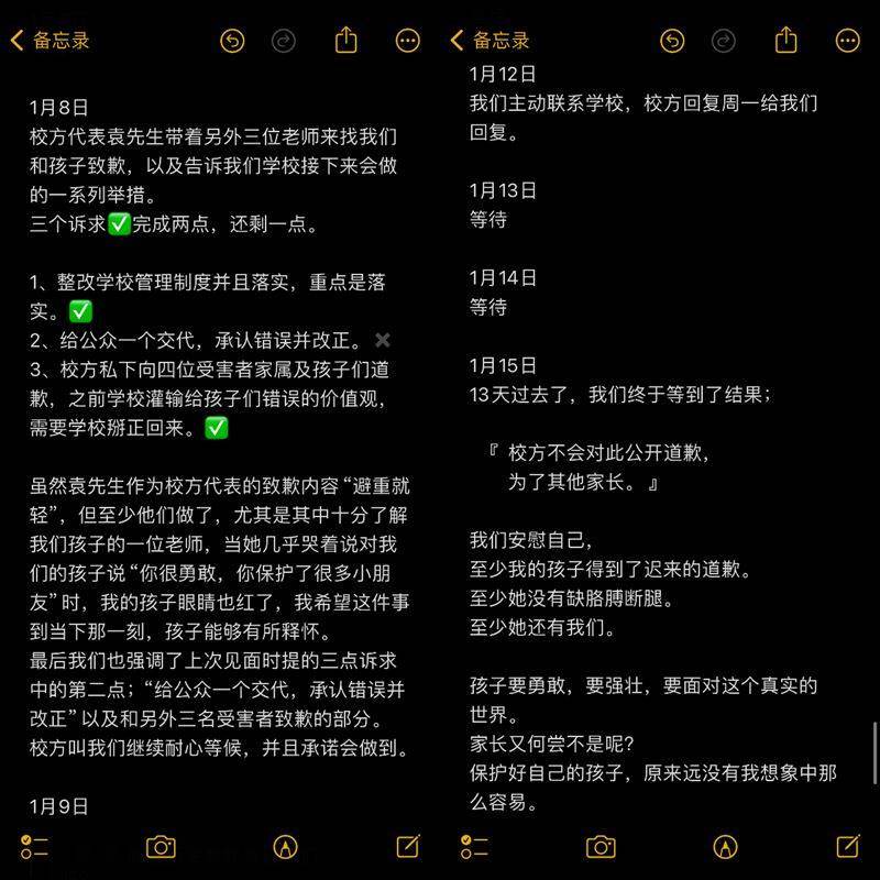 對此,校方承諾會加強管理,同時向受影響的師生致歉,並呼籲家長採取媒體管道而非網路表達訴求,「若擁有特殊的公共平台資源或管道,應知道『更大的能力,需要擔負更大的責任』。」疑似點出郝劭文夫妻透過網路掀起輿論一事並不恰當。