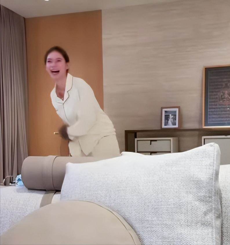 她身穿一件奶黃色的睡衣,很有大家閨秀的風范,和搭檔樂樂談論起了自己做的夢,