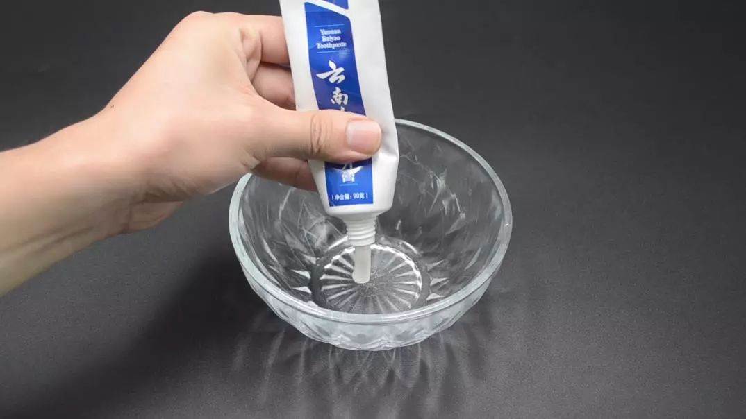 在清洗電飯煲的時候,我們先在家里自制一些清潔劑。先準備一個容器,往容器里擠入一些牙膏。再往容器里倒入一些白醋。最后倒入一些水,攪拌均勻,稀釋它們就可以了。這樣一瓶自制的清潔劑就制作完成了。下面就來看看效果如何吧!