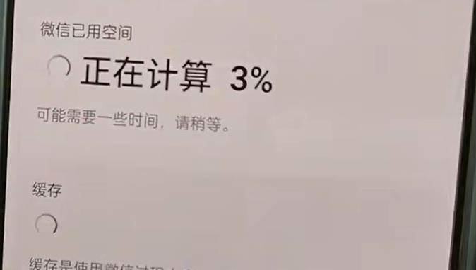 此時,系統會計算微信占用的儲存空間。耐心等待結果,可能您也會驚訝于微信竟占用了如此大的內存。